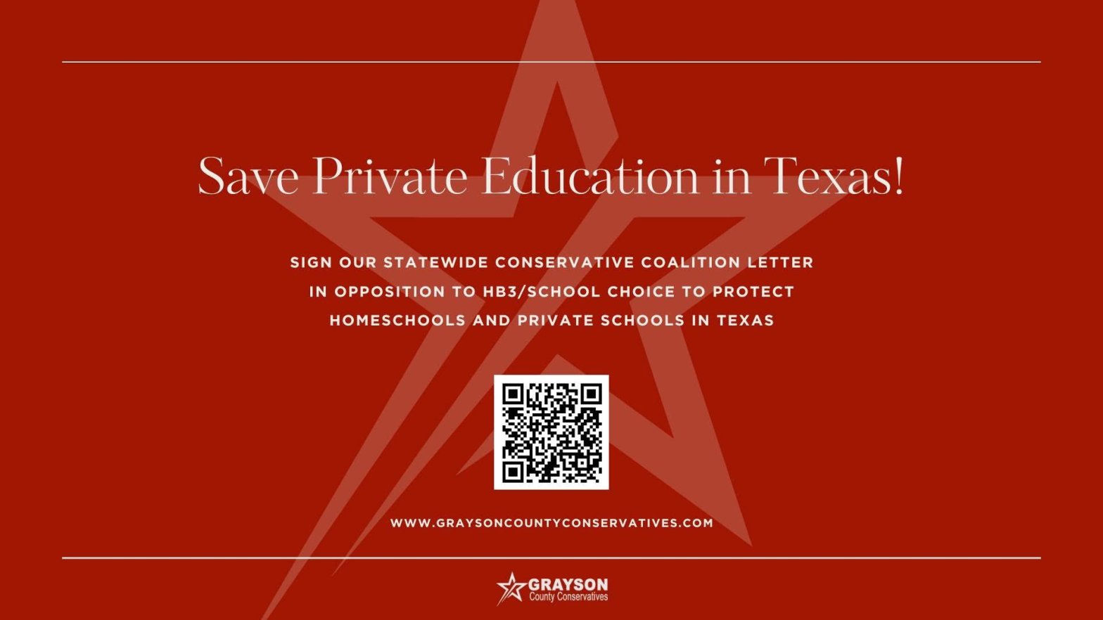 The full letter reveals why this conservative coalition views these “school choice” bills, HB3 (the companion to SB2), as a threat to private education and conservative values—readers who agree can add their signatures at https://graysoncountyconservatives.com/hb3/.
